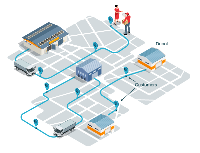 Multi-Depot Routing Optimization involves planning efficient routes for vehicles operating from multiple depots to serve a set of customers. Advanced routing software uses algorithms to optimize routes across all depots, reducing travel costs and improving overall operational efficiency.